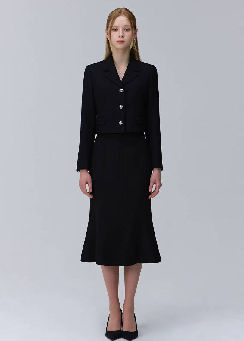 LONG SLEEVES SUIT JACKET AND SKIRT (P169JK016/P169SK020) - JACKET / S / BLACK