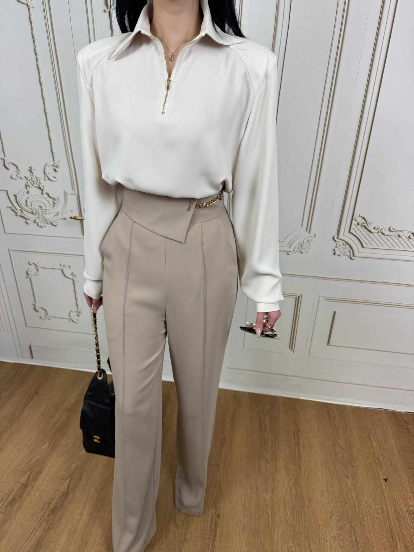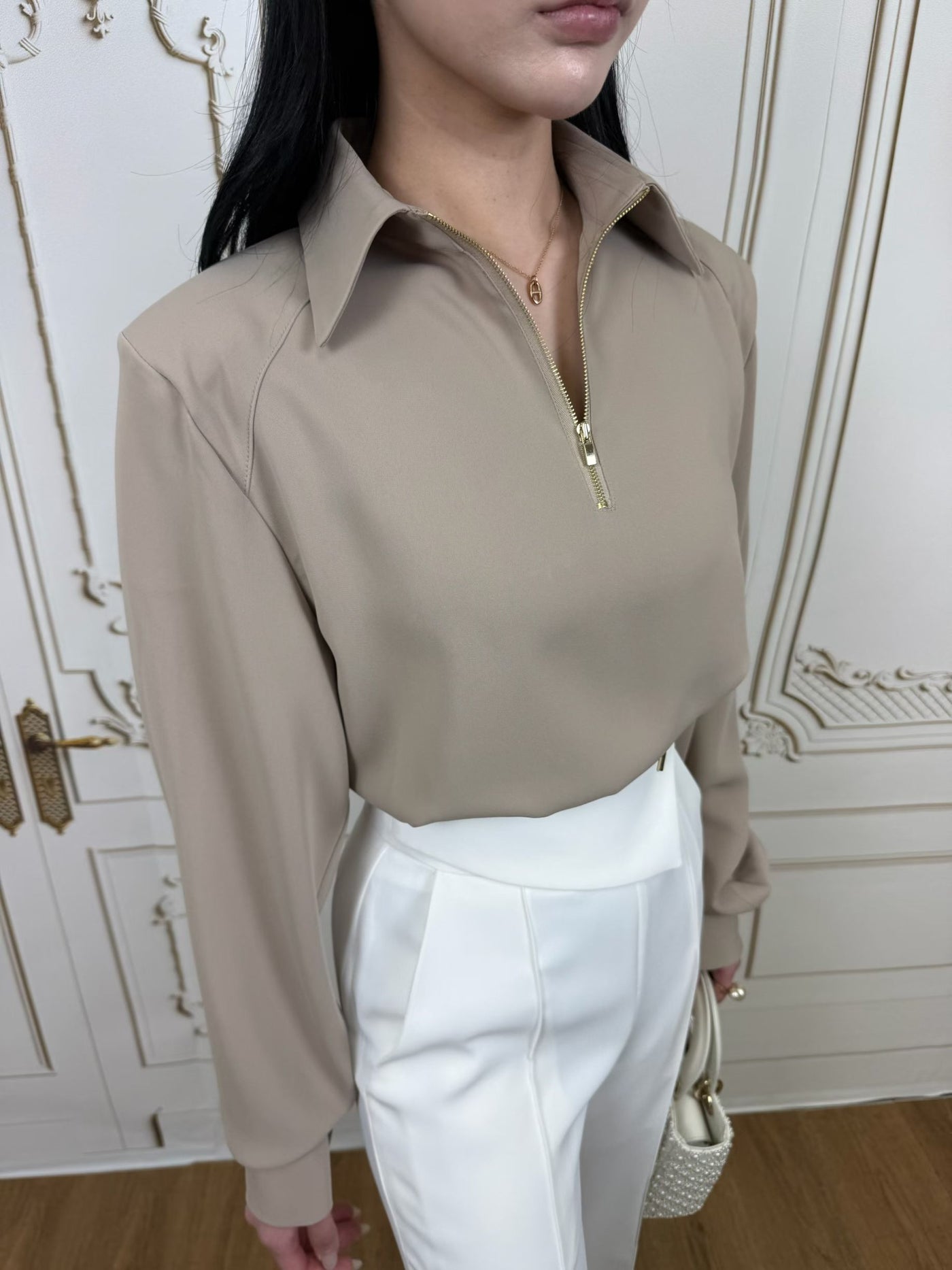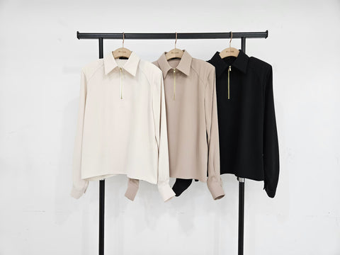 zip collar workwear top (Q464TB075) - FREE / WHITE