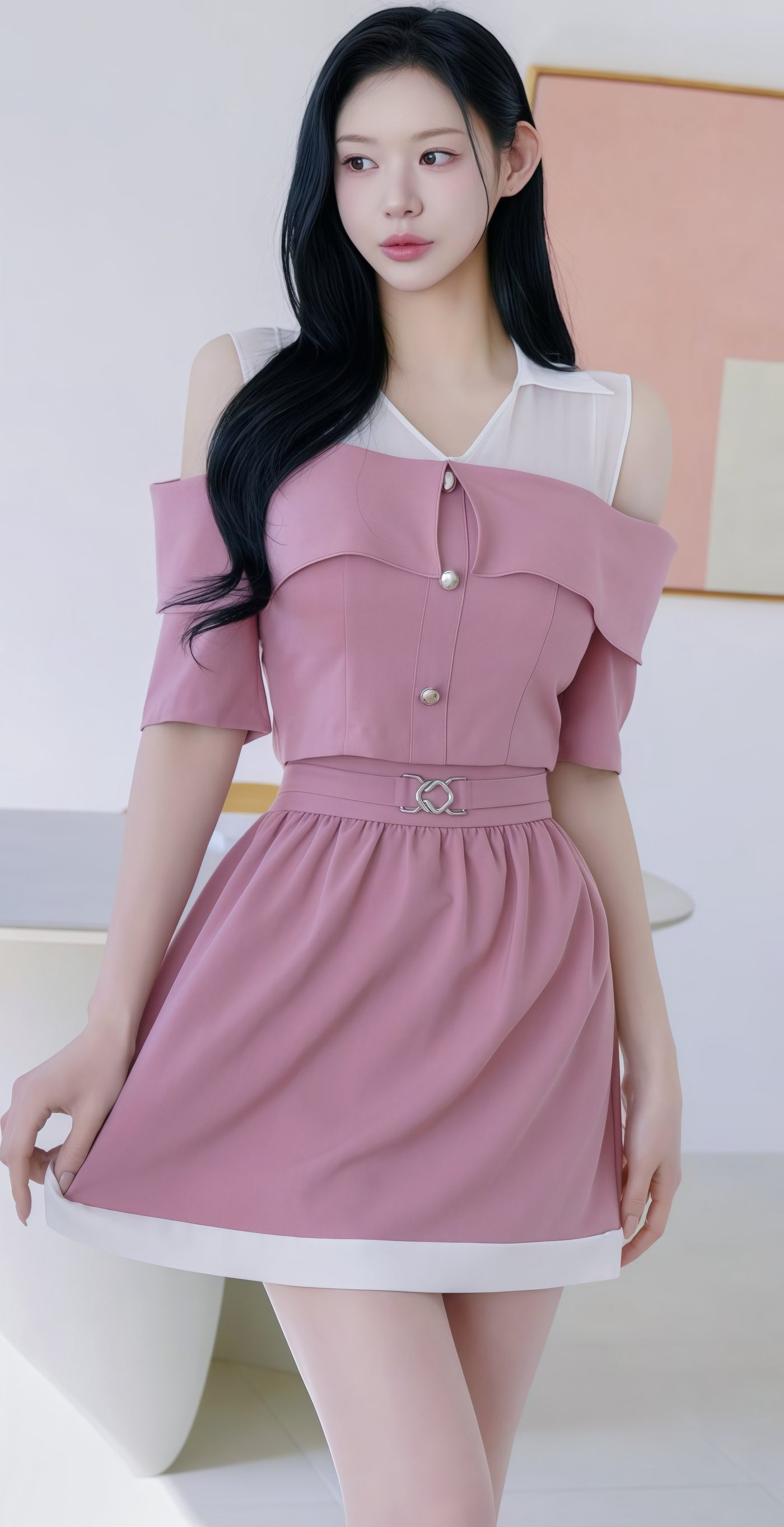 two-piece outfit with cold shoulders and white contrasting (0410TB008/0410SK009) Sale