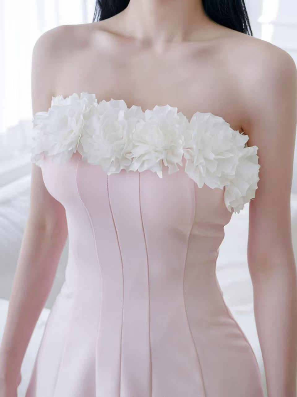 strapless mini dress featuring a decorative white floral (0403DR109) - S / PINK