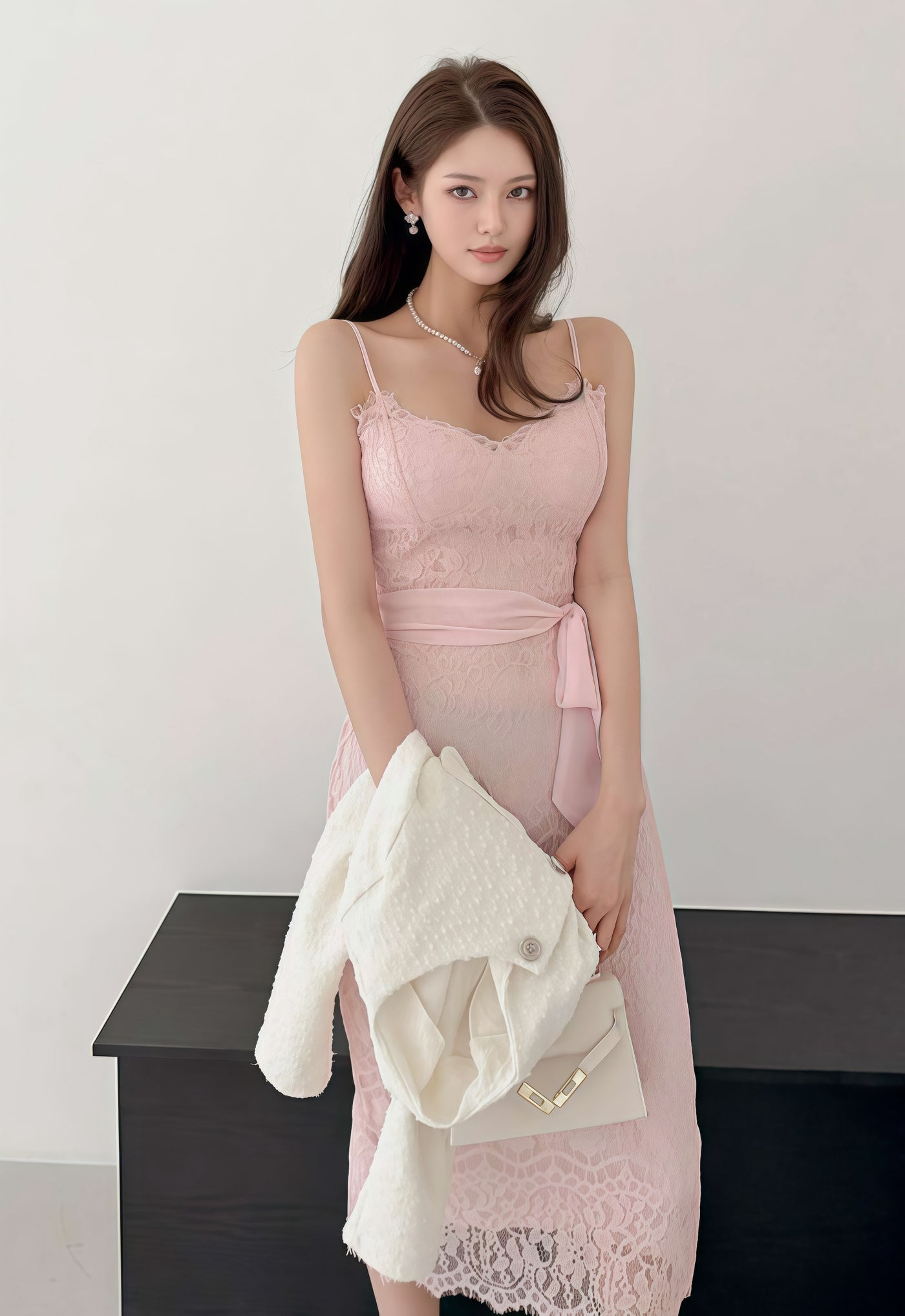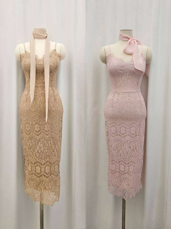Korea Lace Strap Dress (0113DR072) - S / BEIGE