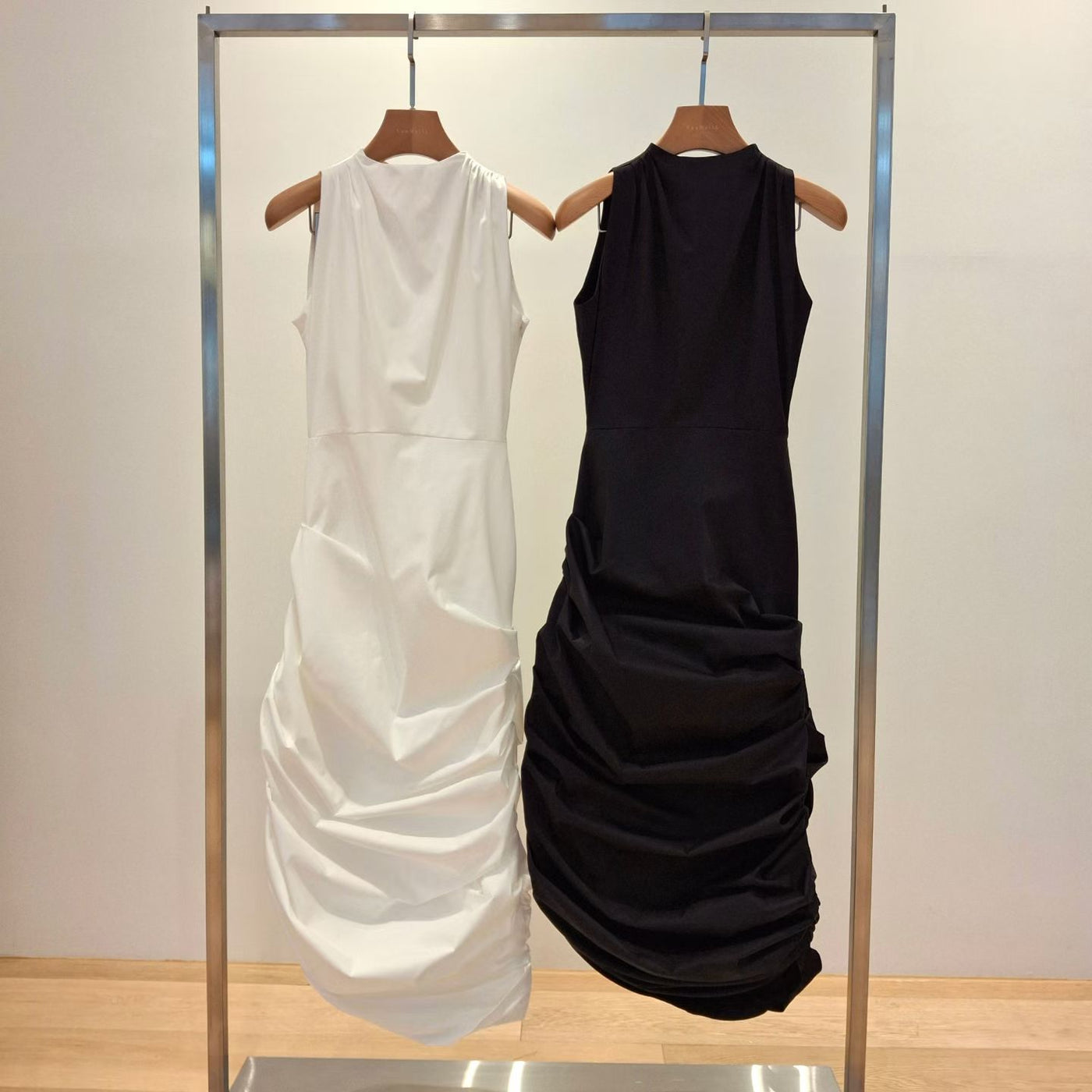 Sleeveless ruched dress (3115DR134) - S / BLACK