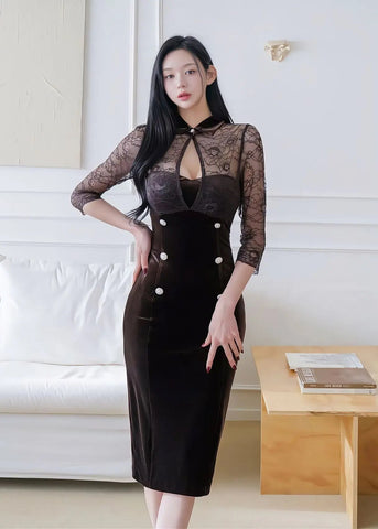 SLIM CUT LACE DRESS (0435DR029) - S / BLACK