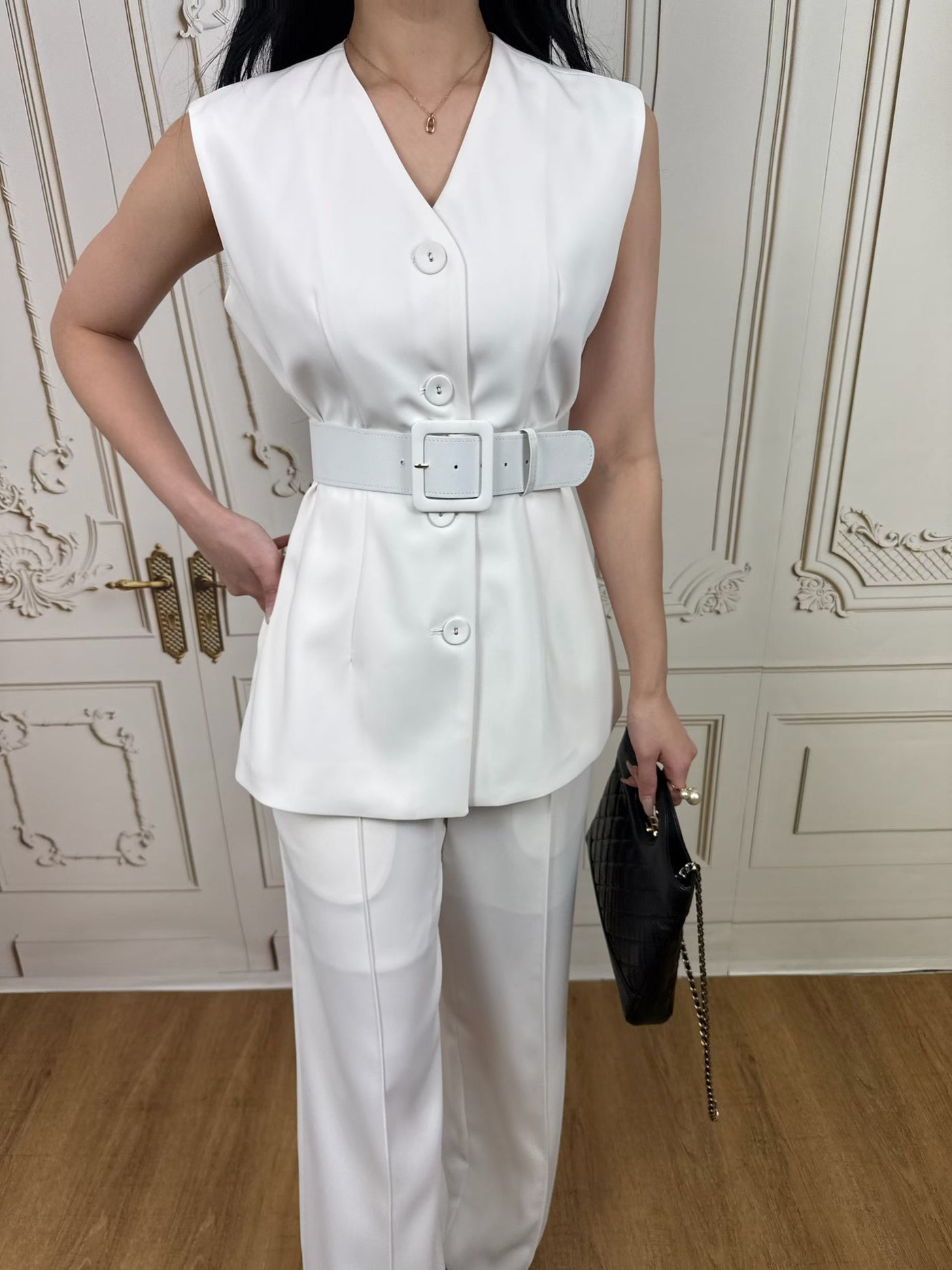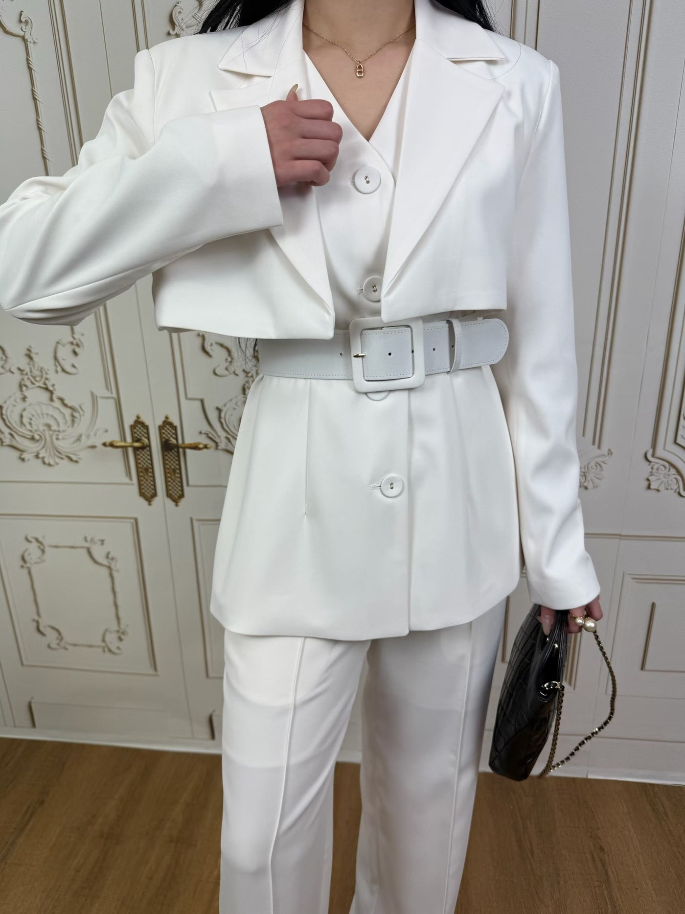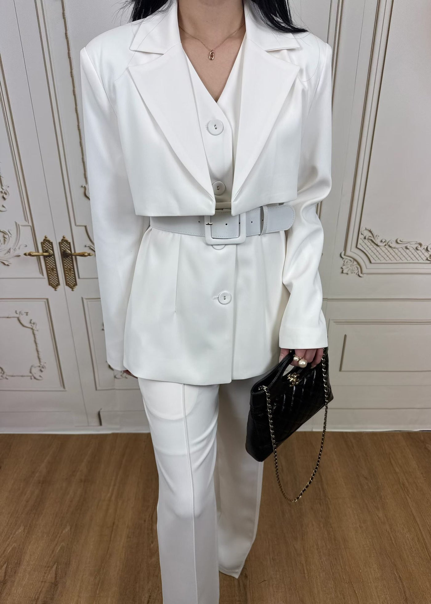 3PIECE VEST BLAZER WITHH BELT (Q464JK019) - FREE / WHITE