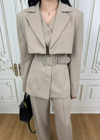 3PIECE VEST BLAZER WITHH BELT (Q464JK019) Sale