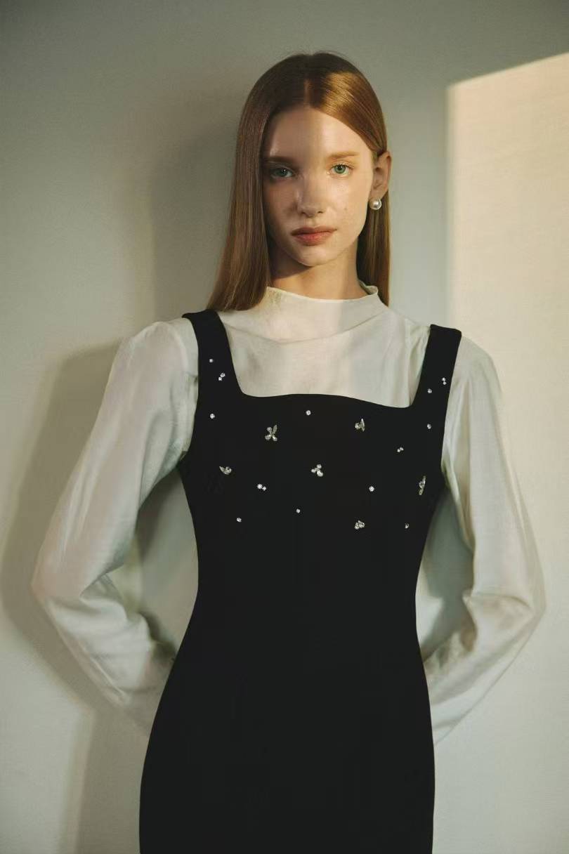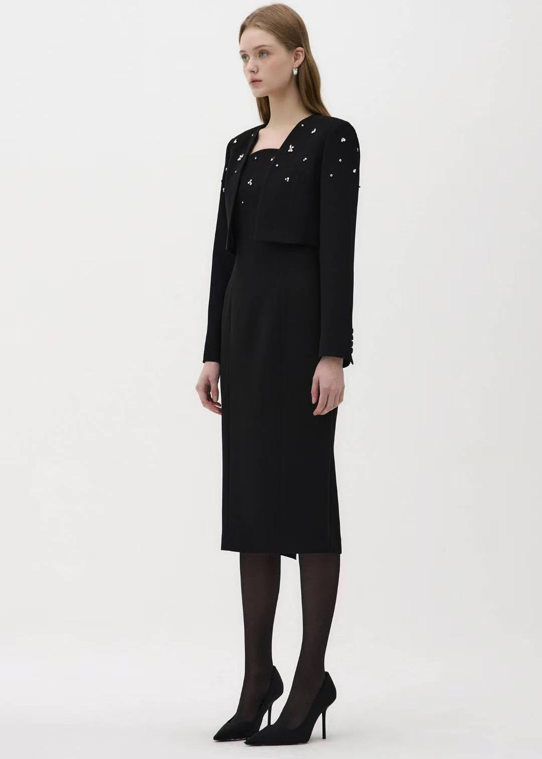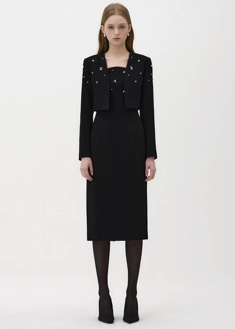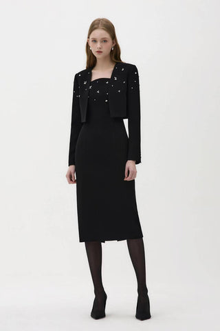 black outfit with star embellishments and dress (P169JK010+P169DR014) - JACKET / S / BLACK