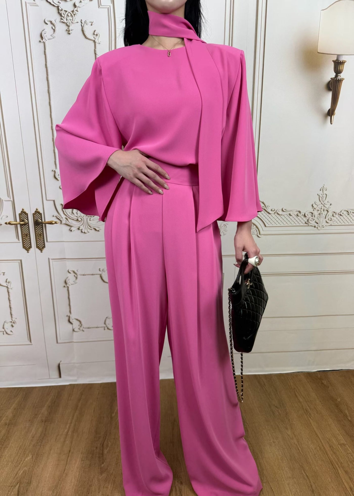 fluid tie blouse and matching wide-leg trousers (Q464TB073/Q464PT036) Sale