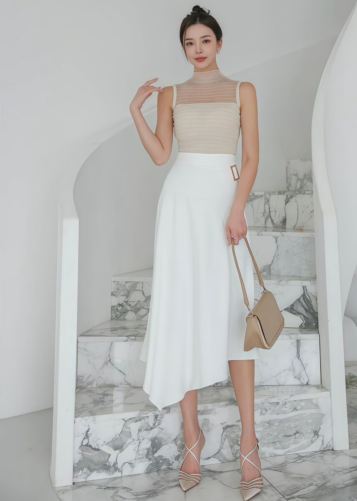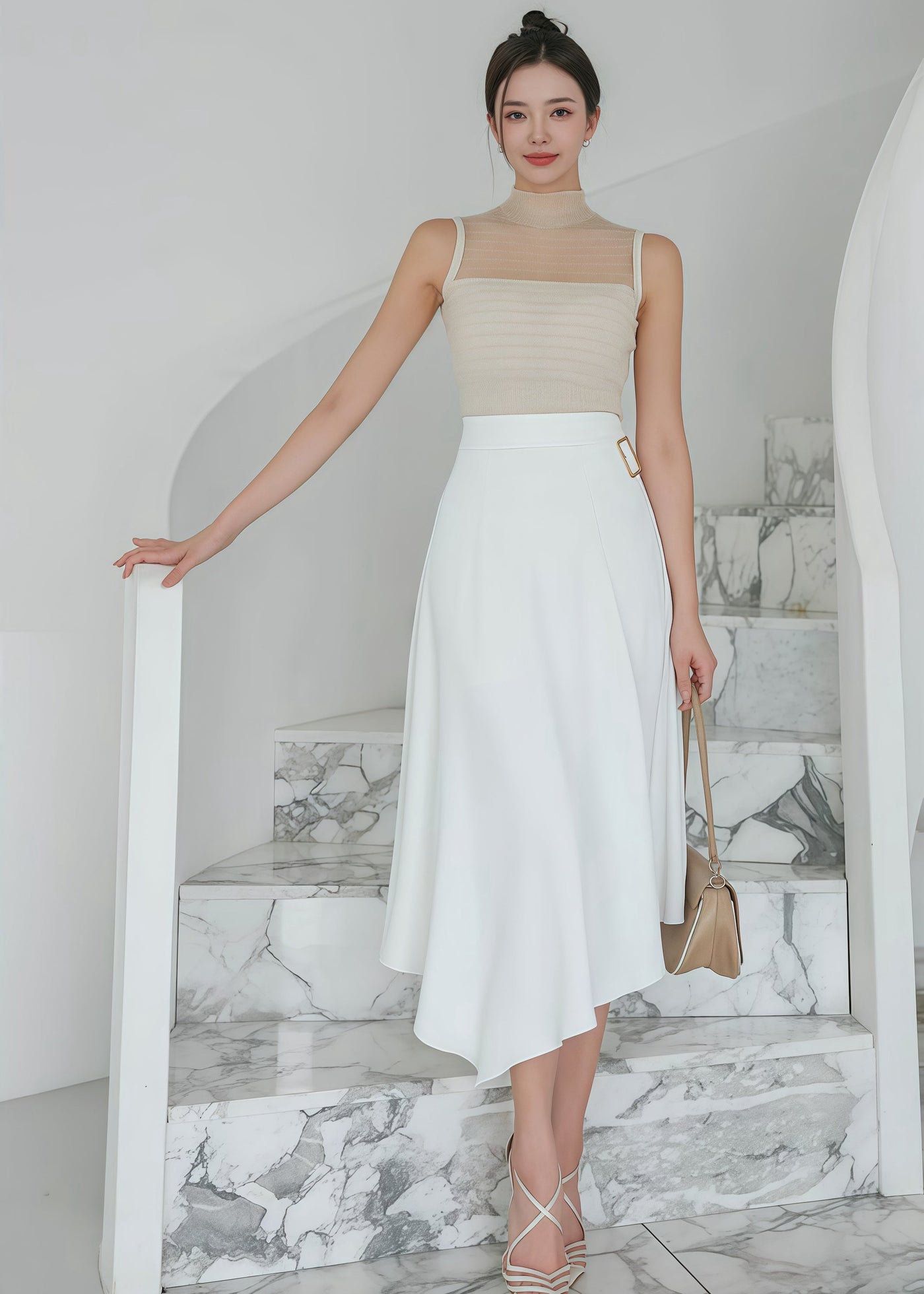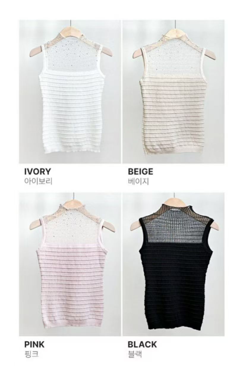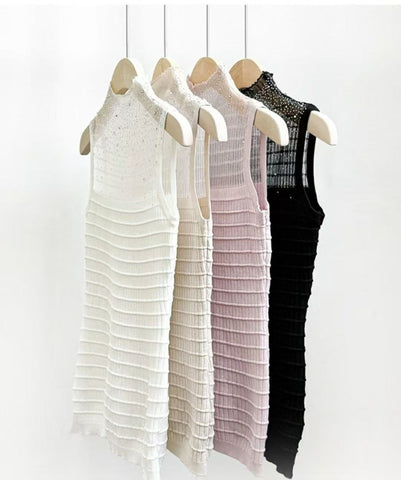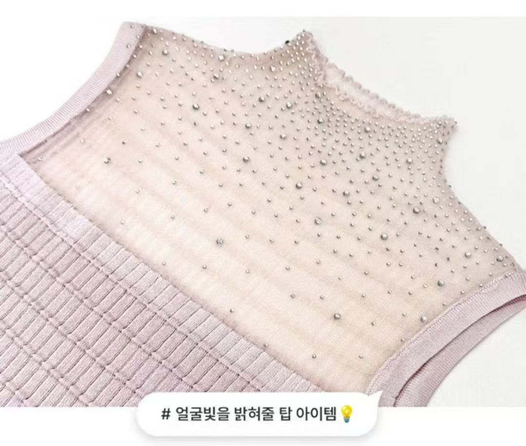 high-waisted midi skirt and sleeveless top with crystal (0411TB158/0411SK157) - TOP(SIZE:FREE) / FREE / WHITE